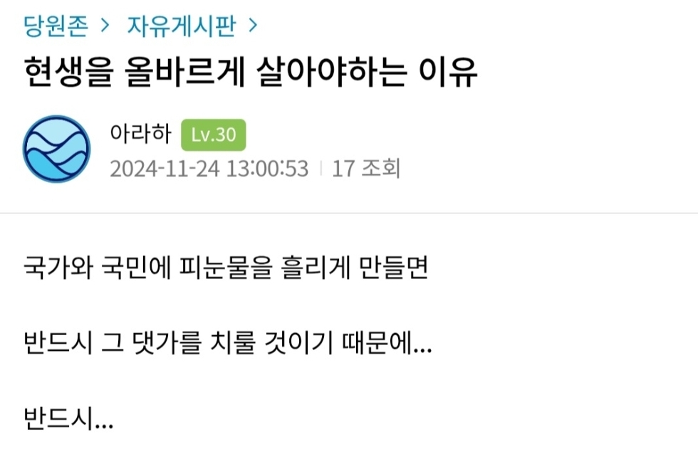 게시판이 제대로 안돌아가니. 글들이 중구난방으로. 이건 입틀막이분명하다. 몇개월째 .느려터져서는 게시판 첫 상단에 개선한다며 설문조사를실시하더니 더 느려 터져서리.한시간에 1나의 글을 올릴까말까고. 차단되었다가.다시 되었다가. 글이 중복으로 올라가기도하고 . 이건 입틀막이 분명하다. 금권선거 .지역감정.계파정치 기득권들의 입틀막이다