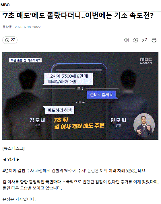 '7초 매도'에도 몰랐다더니‥ 이번에는 기소 속도전?