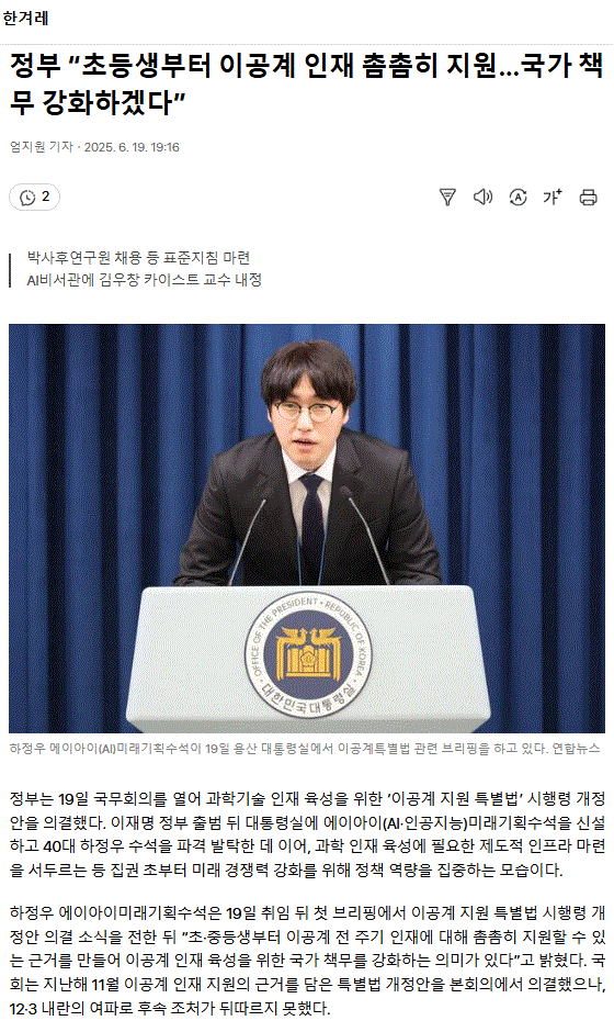 정부 “초등생부터 이공계 인재 촘촘히 지원… 국가 책무 강화하겠다”