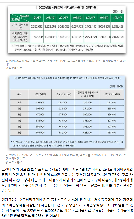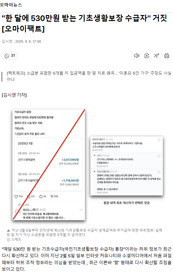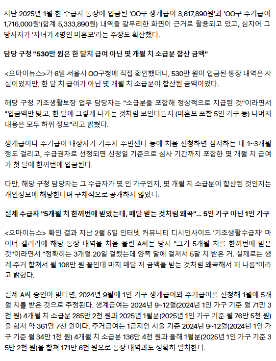 "한 달에 530만원 받는 기초생활보장 수급자" 거짓 [오마이팩트]
