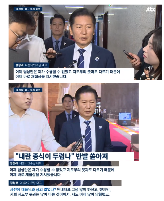 정청래 "당황" 김병기 "사과해"… 대통령 "그걸 어떻게 맞바꿔요?"