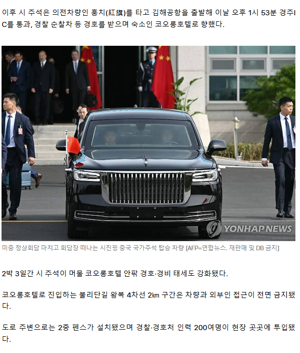 [경주APEC] 11년만에 방한 시진핑, 경주 도착… 2박3일 일정 돌입 (종합)
