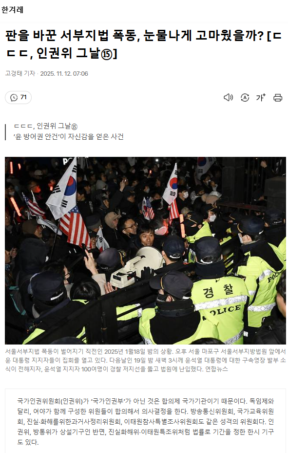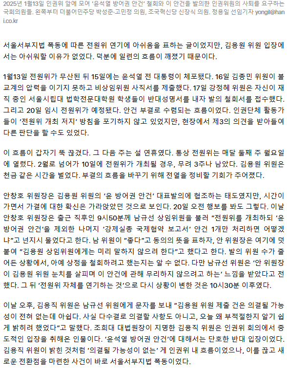 판을 바꾼 서부지법 폭동, 눈물나게 고마웠을까? [ㄷㄷㄷ, 인권위 그날⑮]