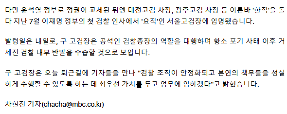 신임 대검 차장에 구자현 서울고검장 임명‥ 노만석 사퇴일 전격 인사
