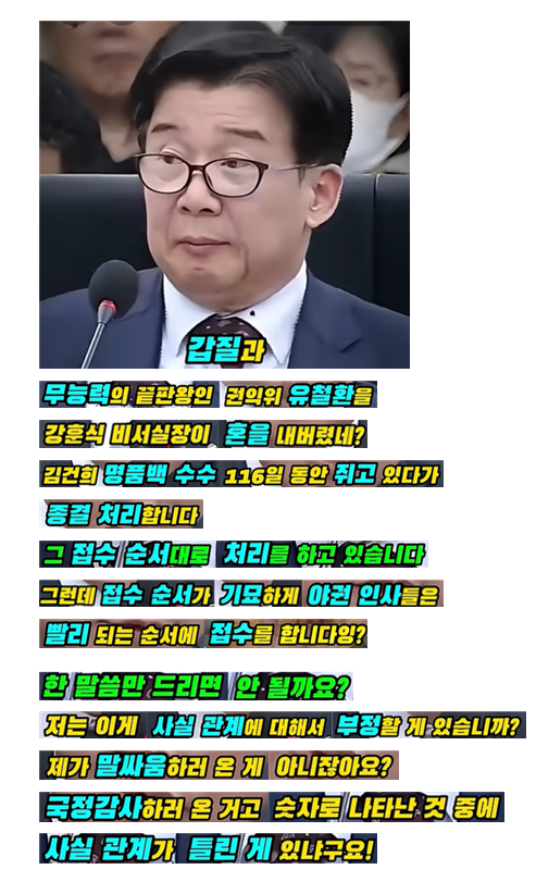 “갈질 무능력” 끝판왕 “권익위원장” 유철환! 작년 “국정감사”에서도 강훈식 비서실장에게 혼쭐!?