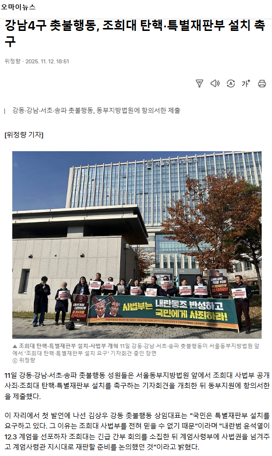 강남4구 촛불행동, 조희대 탄핵·특별재판부 설치 촉구
