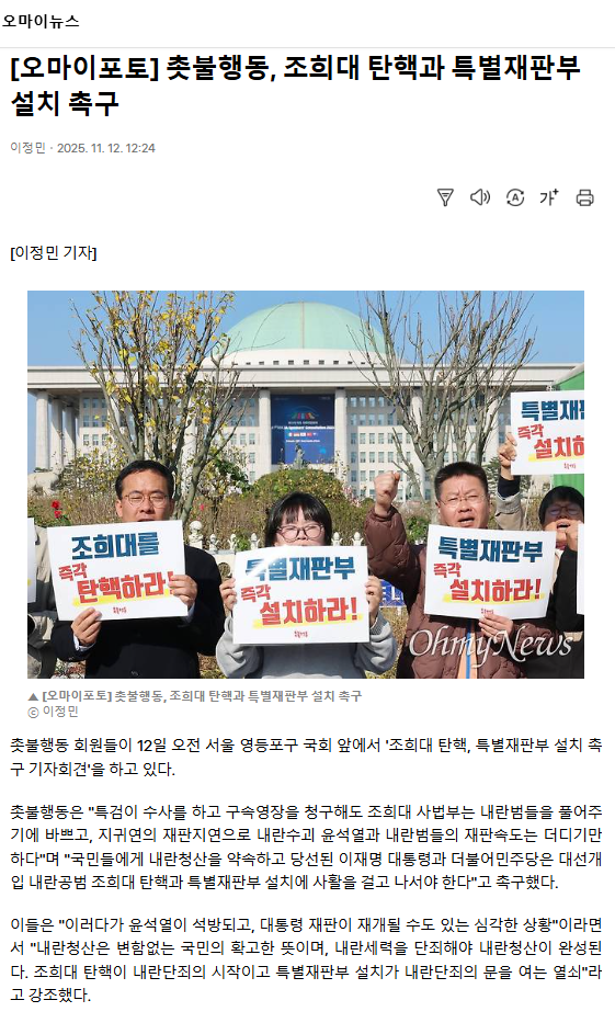 [오마이포토] 촛불행동, 조희대 탄핵과 특별재판부 설치 촉구