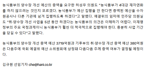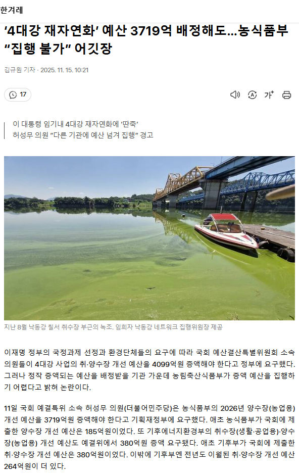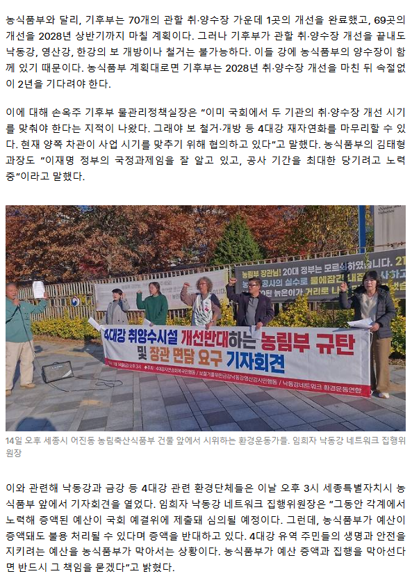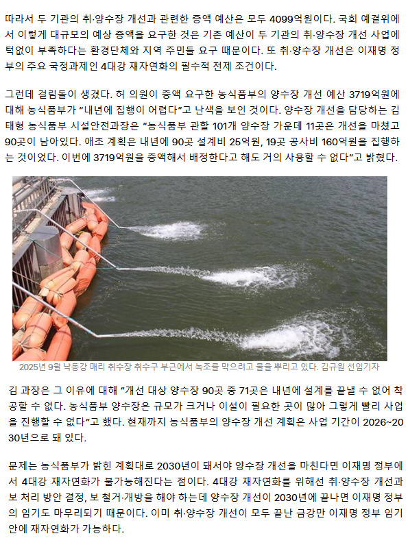 ‘4대강 재자연화’ 예산 3719억 배정해도… 농식품부 “집행 불가” 어깃장