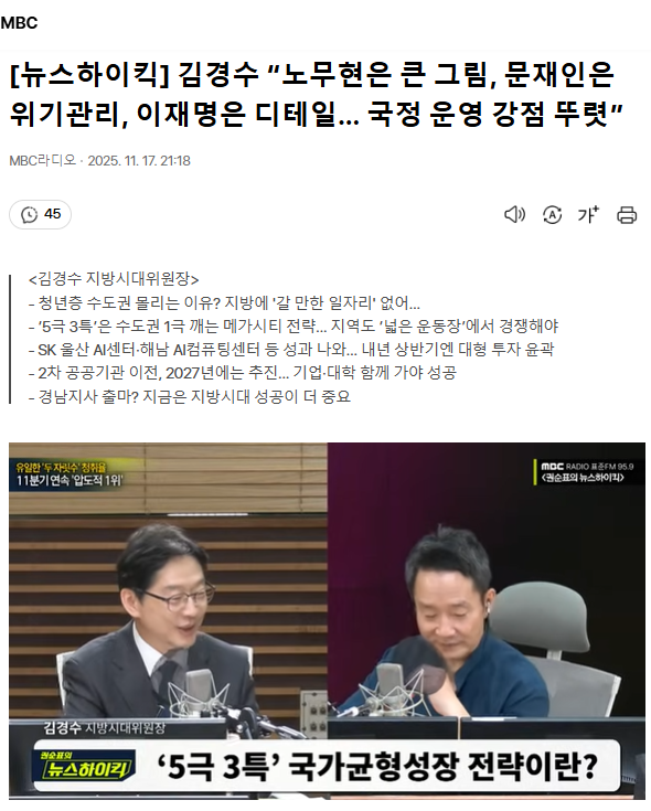 [뉴스하이킥] 김경수 “노무현은 큰 그림, 문재인은 위기관리, 이재명은 디테일… 국정 운영 강점 뚜렷”