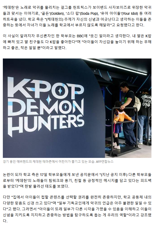 '악귀 다뤄 불편' 민원에 케데헌 노래 금지한 英 학교… "다들 좋다는데?" 반발에 결국