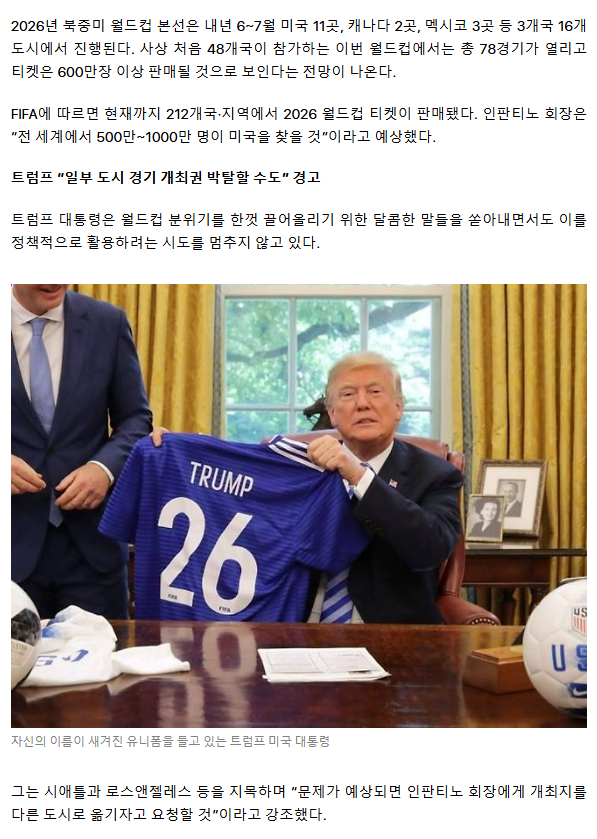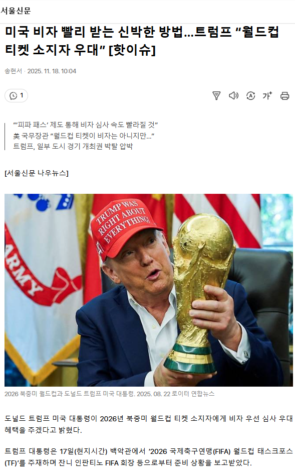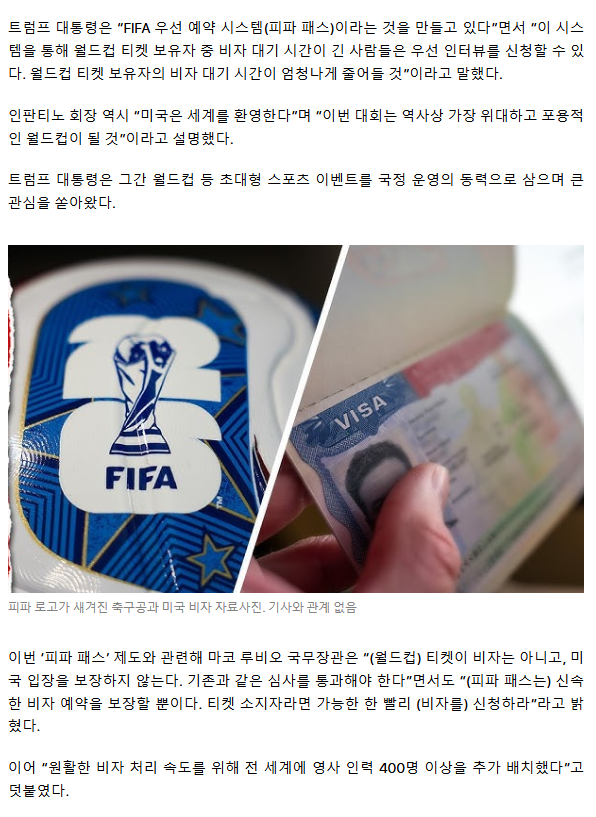 미국 비자 빨리 받는 신박한 방법… 트럼프 “월드컵 티켓 소지자 우대” [핫이슈]