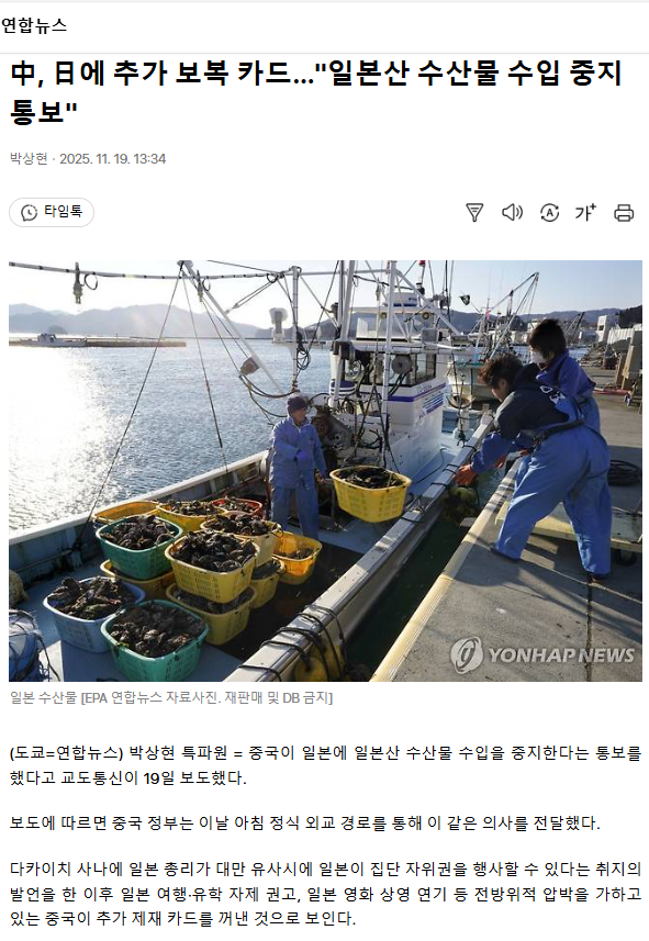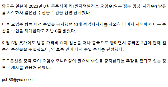 中, 日에 추가 보복 카드… "일본산 수산물 수입 중지 통보"