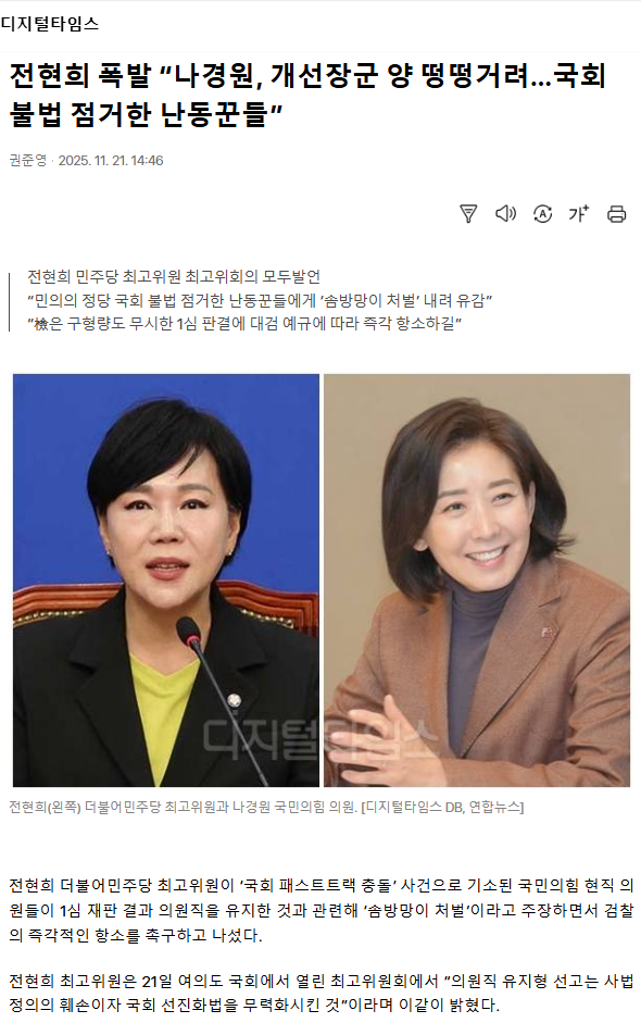 전현희 폭발 “나경원, 개선장군 양 떵떵거려… 국회 불법 점거한 난동꾼들”ㅡ 난동꾼들에 벌금이라니