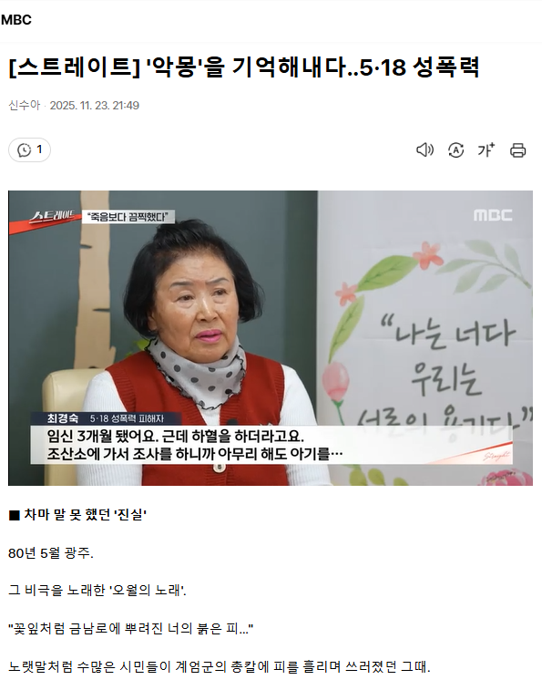 [스트레이트] '악몽'을 기억해내다‥5·18 성폭력 ㅡ 5.18 성폭력피해자의 보상 기준 개선 필요