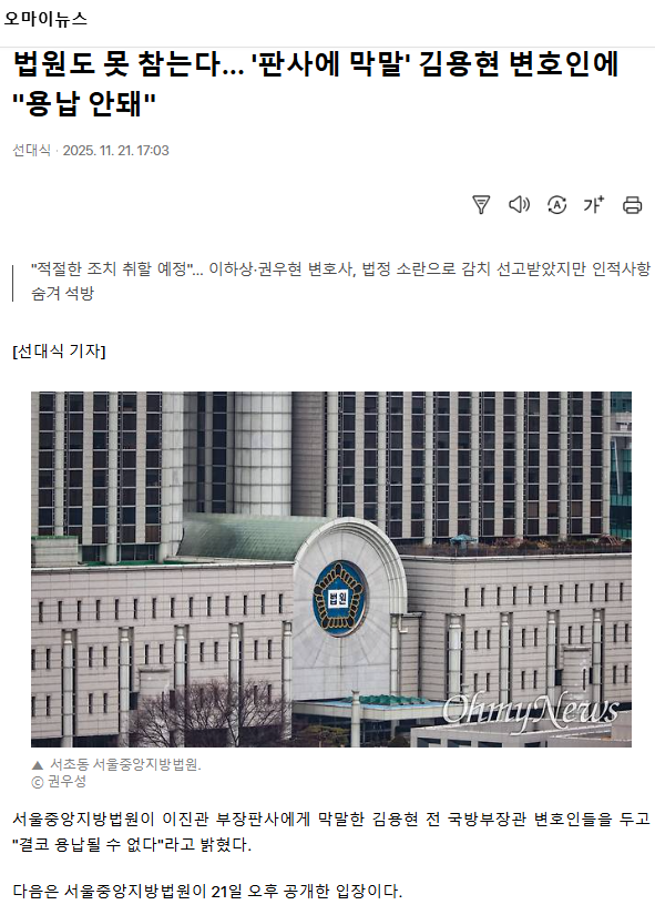 법원도 못 참는다... '판사에 막말' 김용현 변호인에 "용납 안돼"