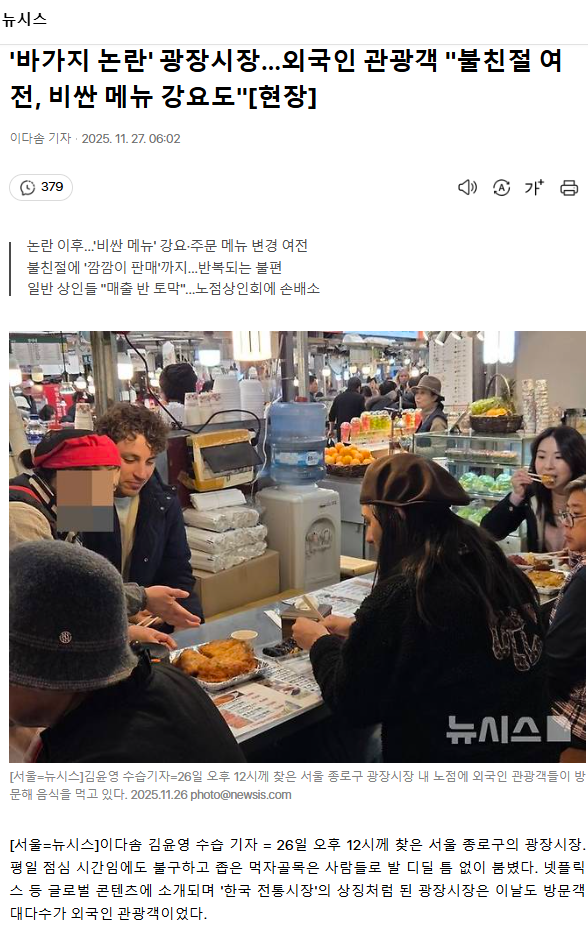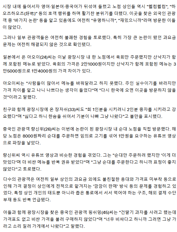 '바가지 논란' 광장시장… 외국인 관광객 "불친절 여전, 비싼 메뉴 강요도" [현장]