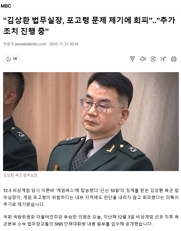 "김상환 법무실장, 포고령 문제 제기에 회피"‥"추가 조치 진행 중"