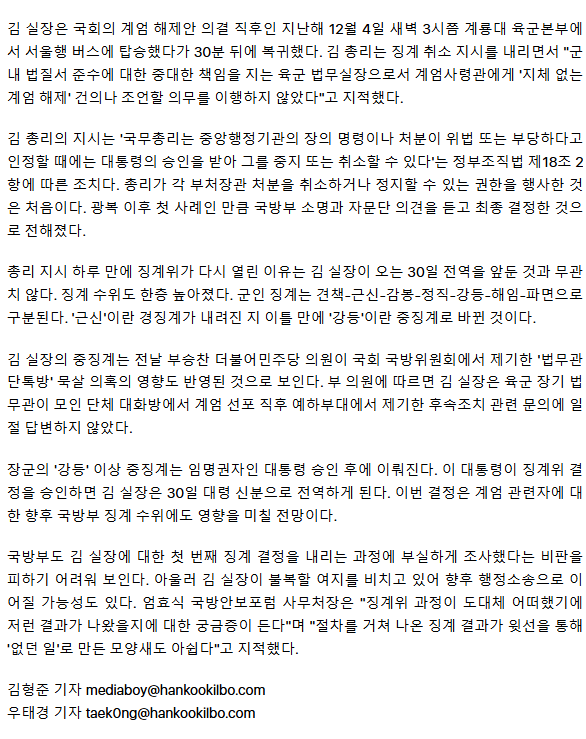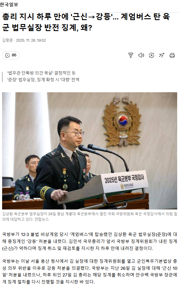 총리 지시 하루 만에 '근신→강등'… 계엄버스 탄 육군 법무실장 반전 징계, 왜?