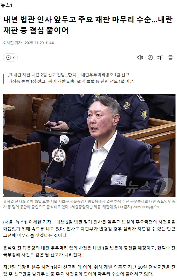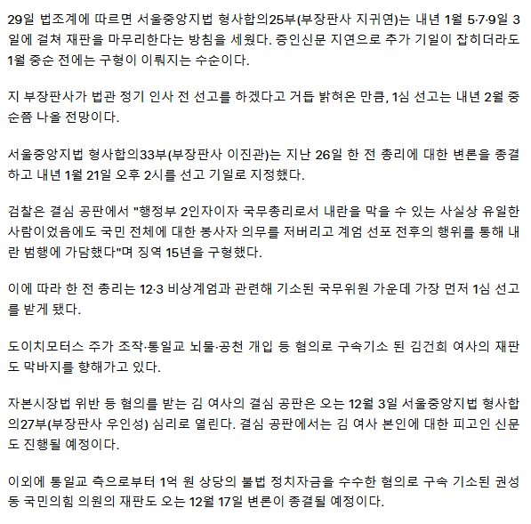 내년 법관 인사 앞두고 주요 재판 마무리 수순… 내란 재판 등 결심 줄이어 ㅡ 1년 되는 내란재판
