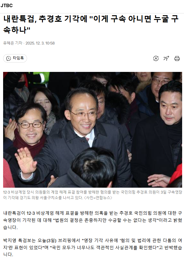 내란특검, 추경호 기각에 "이게 구속 아니면 누굴 구속하나"