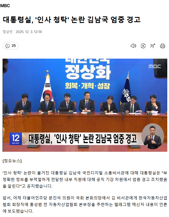 대통령실, '인사 청탁' 논란 김남국 엄중 경고 ㅡ 문진석의원직 사퇴하고, 김남국은 사퇴하라