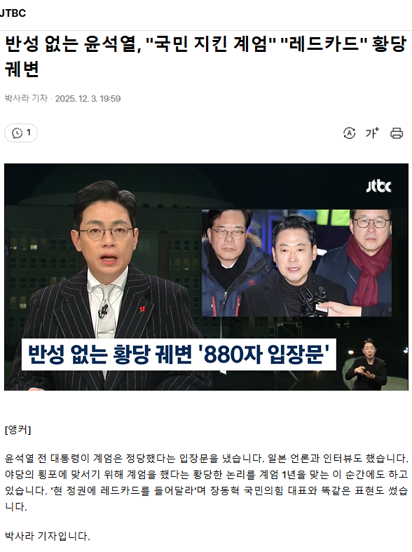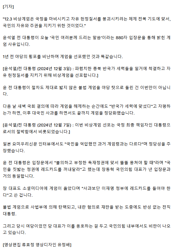 반성 없는 윤석열, "국민 지킨 계엄" "레드카드" 황당 궤변