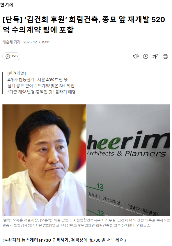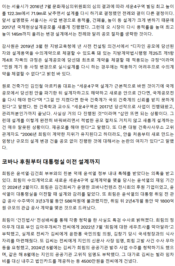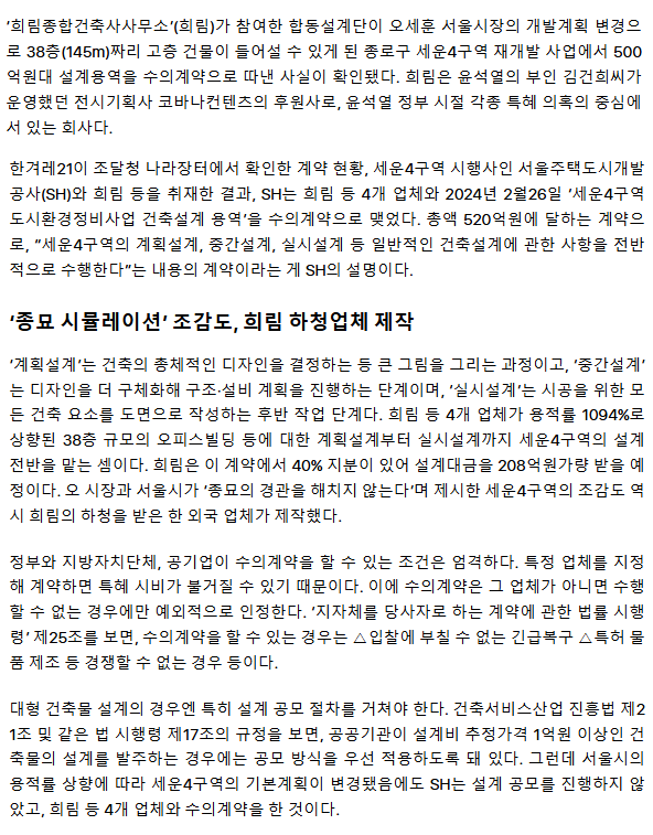 [단독] ‘김건희 후원’ 희림건축, 종묘 앞 재개발 520억 수의계약 팀에 포함