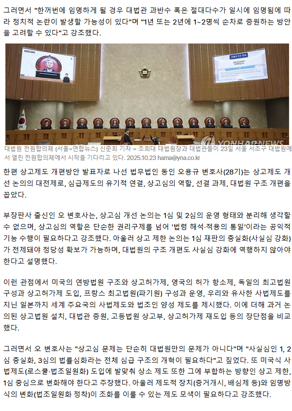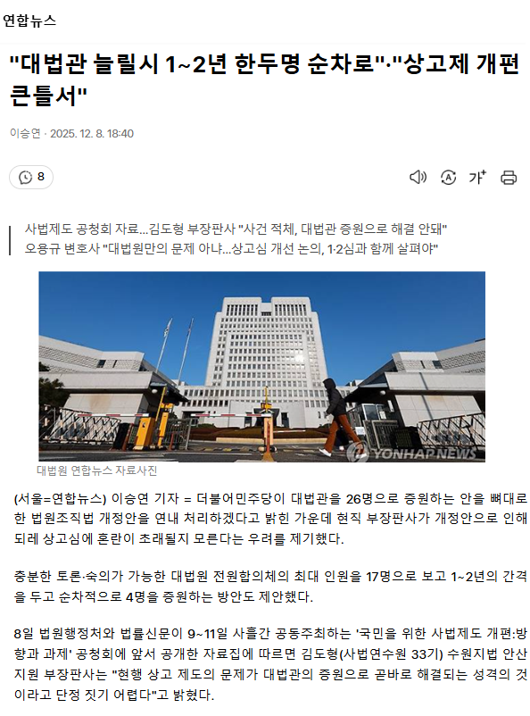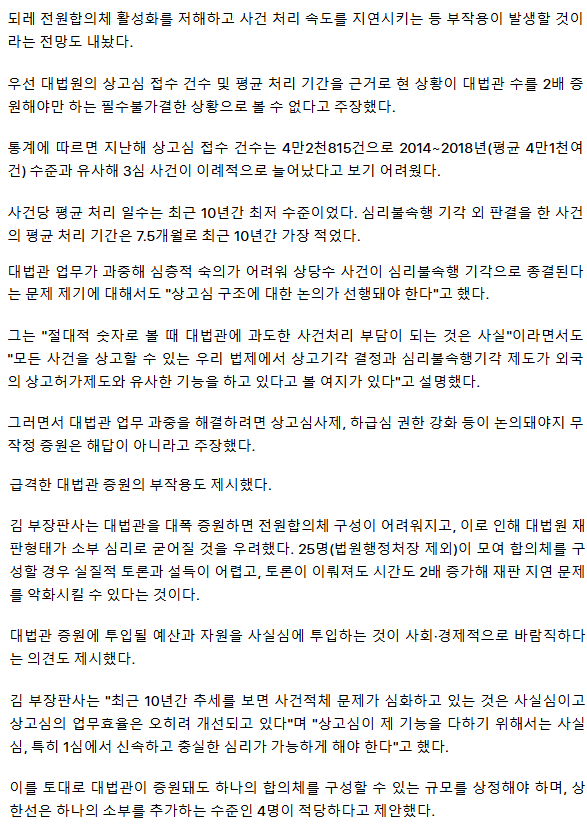 "대법관 늘릴시 1∼2년 한두명 순차로"· "상고제 개편 큰틀서"