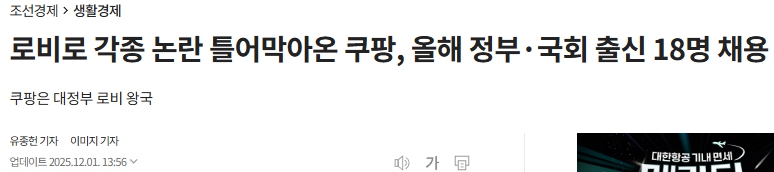 영입하여 정부 국회 상대 로비에만 진심인 로비왕국 쿠팡