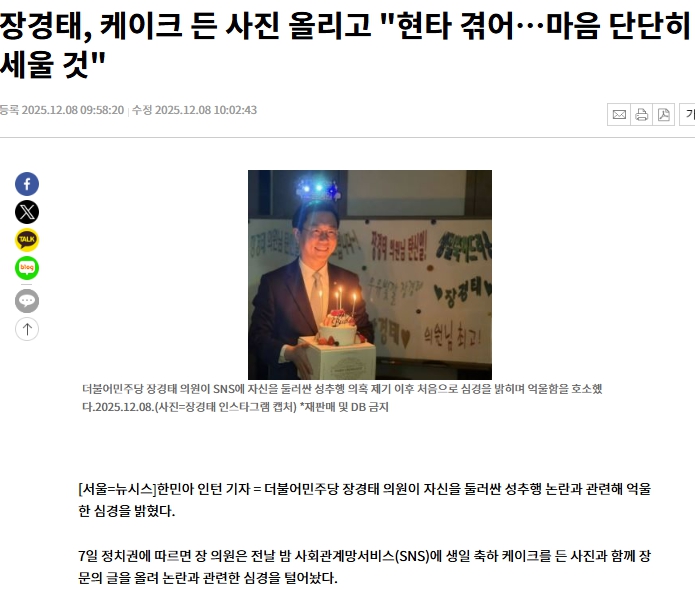 자신의 부주의로 발생한 일로 민주당을 난장판으로 만들더니 생파사진을 SNS에 올릴