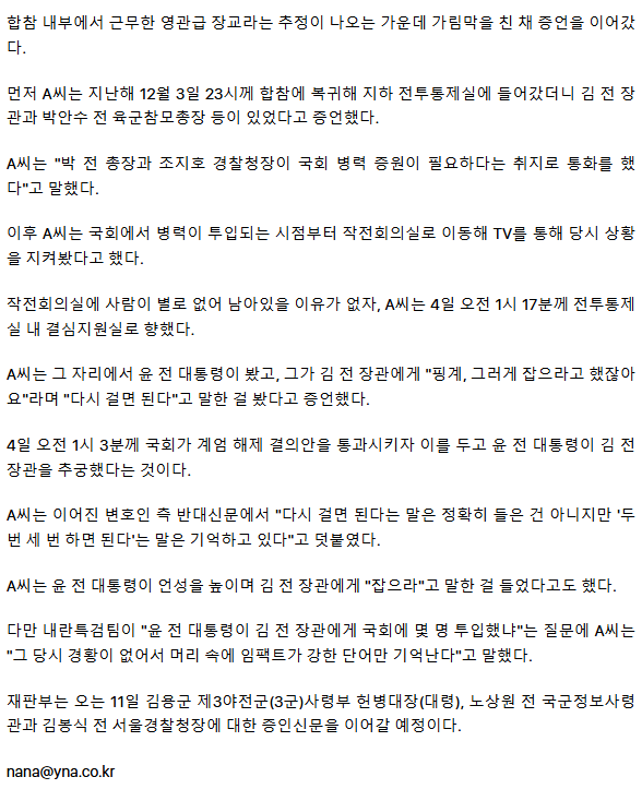 방첩사 장교 "尹이 '두 번, 세 번 계엄하면 된다' 말해" 법정 증언