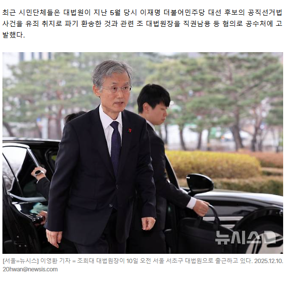 공수처, 조희대 대법원장 입건… "고발 사건 다수 접수돼" [뉴시스Pic]ㅡ 조희대를 구속하라