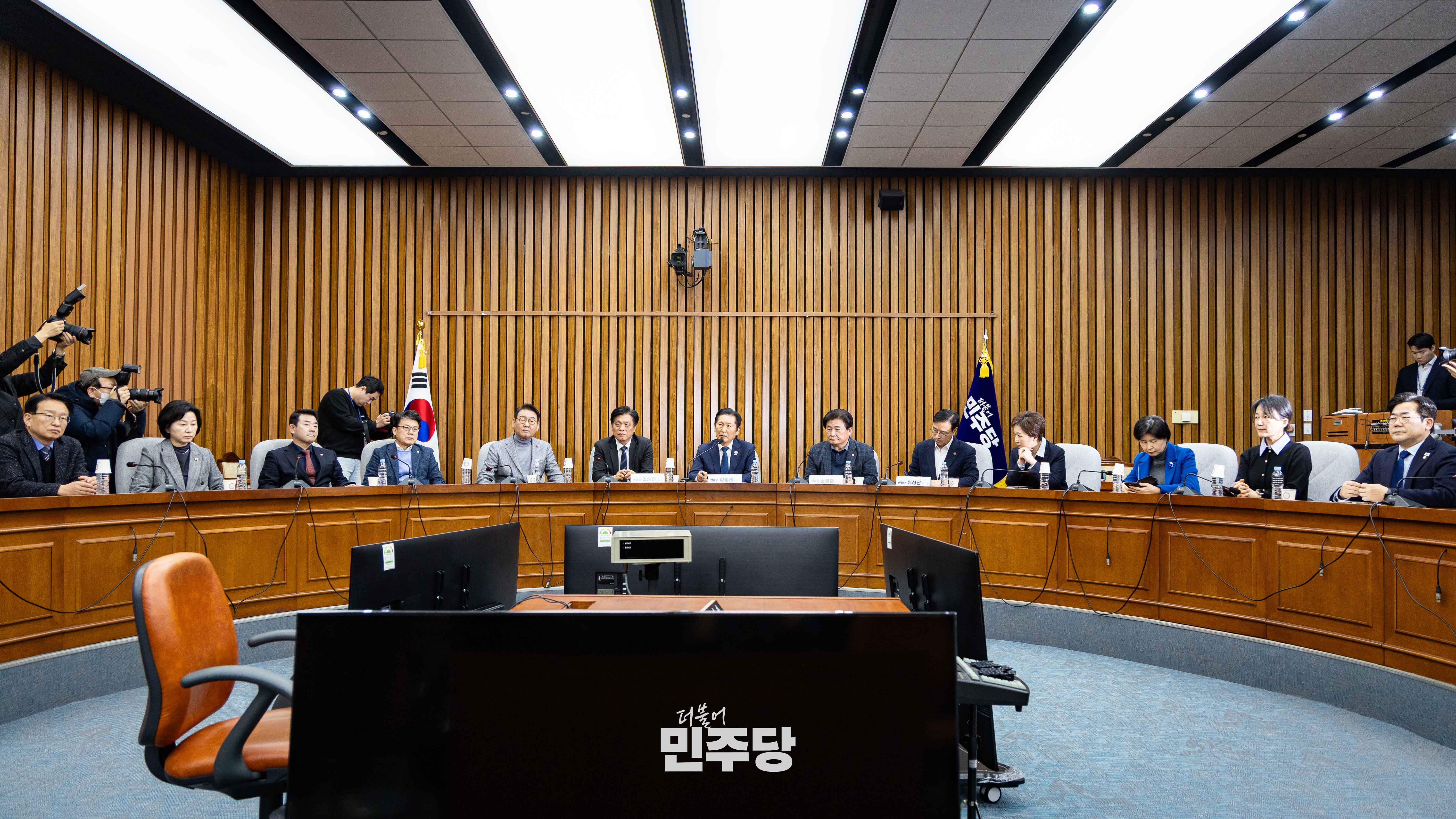 정청래 당대표가 2026.02.06.(금) 국회 본청 245호에서 진행된 3선의원 간담회에 참석하여 조국혁신당과의 합당을 두고 의견을 청취하고 있다.