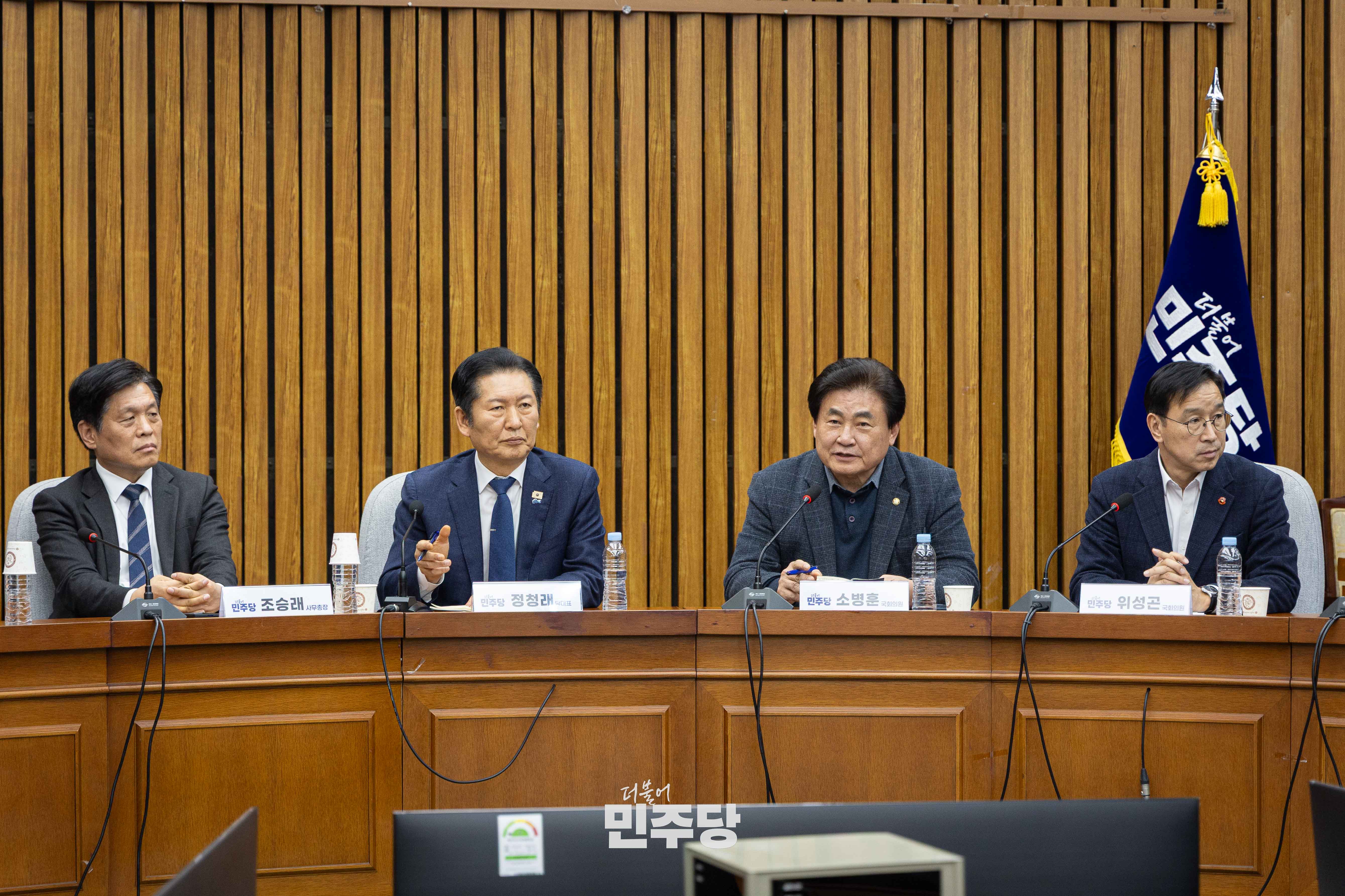 정청래 당대표가 2026.02.05.(목) 국회 본청 245호에서 진행된 초선의원 간담회에 참석하여 조국혁신당과의 합당에 대한 초선의원들의 의견을 경청하겠다 말하고 있다.