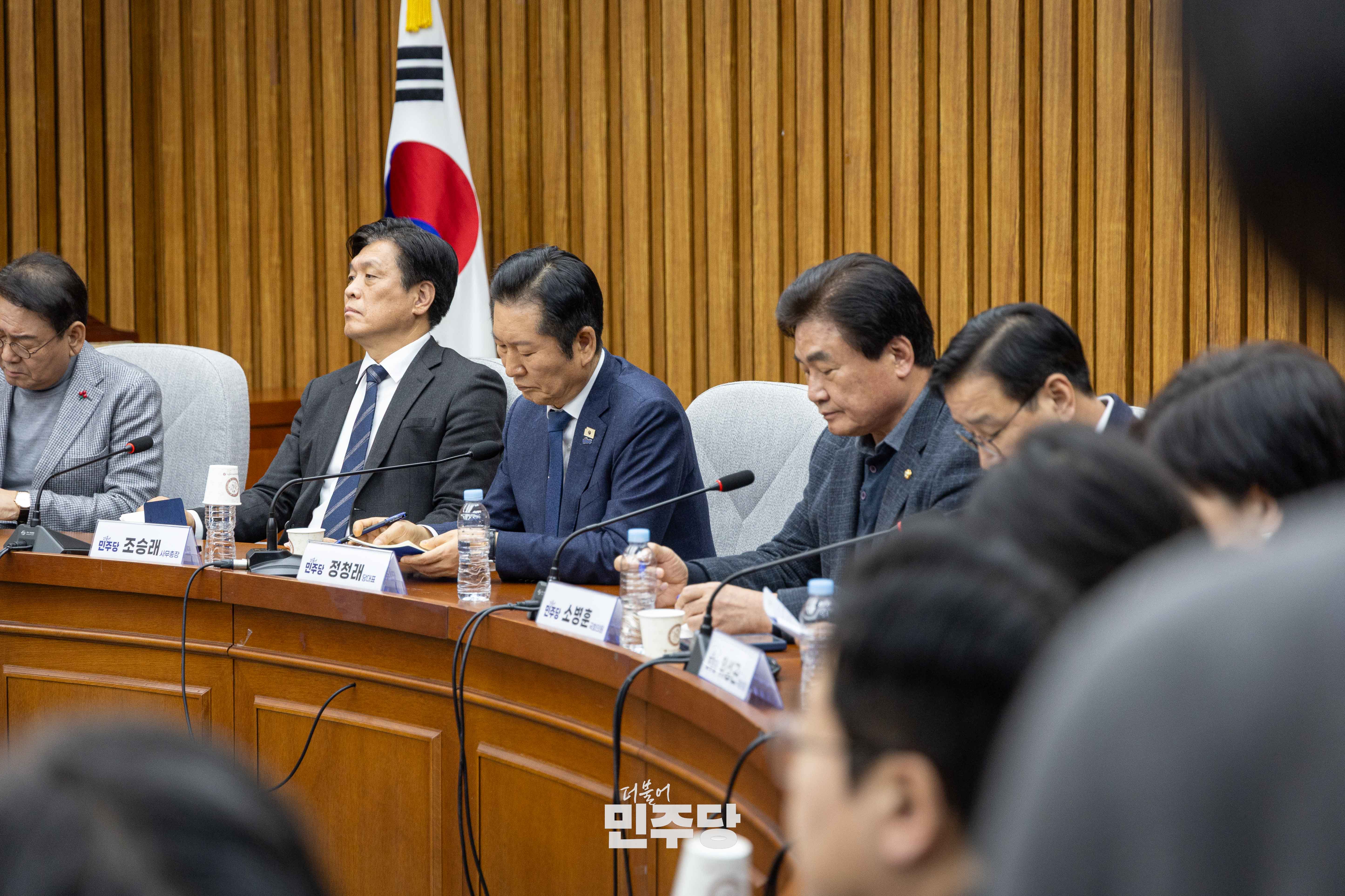 정청래 당대표가 2026.01.26.(월) 국회 본청 당대표회의실에서 열린 최고위원회의에 참석하여 25일 별세한 이해찬 상임고문에 대한 추모 묵념을 하고 있다.