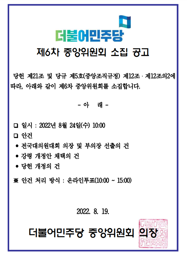 제6차 중앙위원회 소집 공고