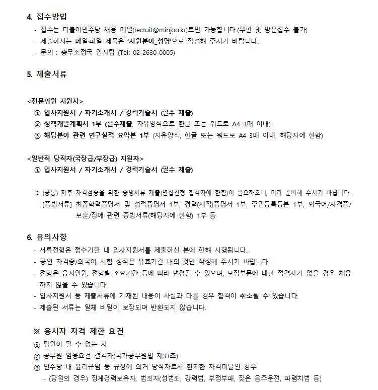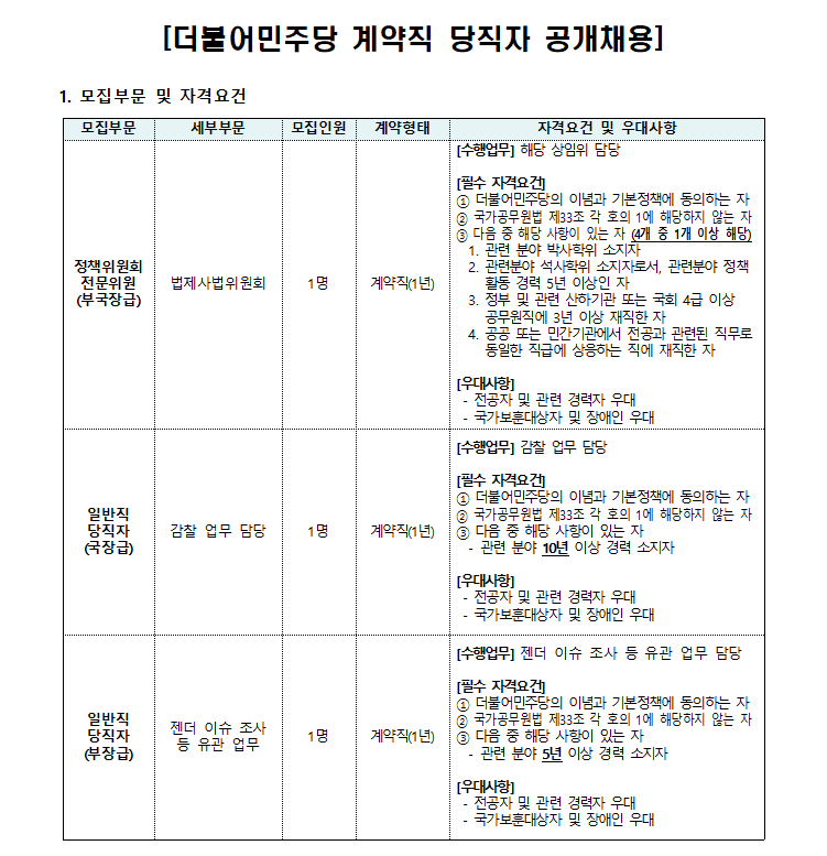 더불어민주당 계약직 공개채용 공고