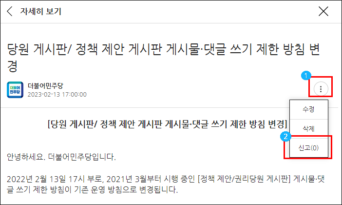[당원게시판/ 정책제안게시판 게시물·댓글 쓰기 제한 방침 변경]
