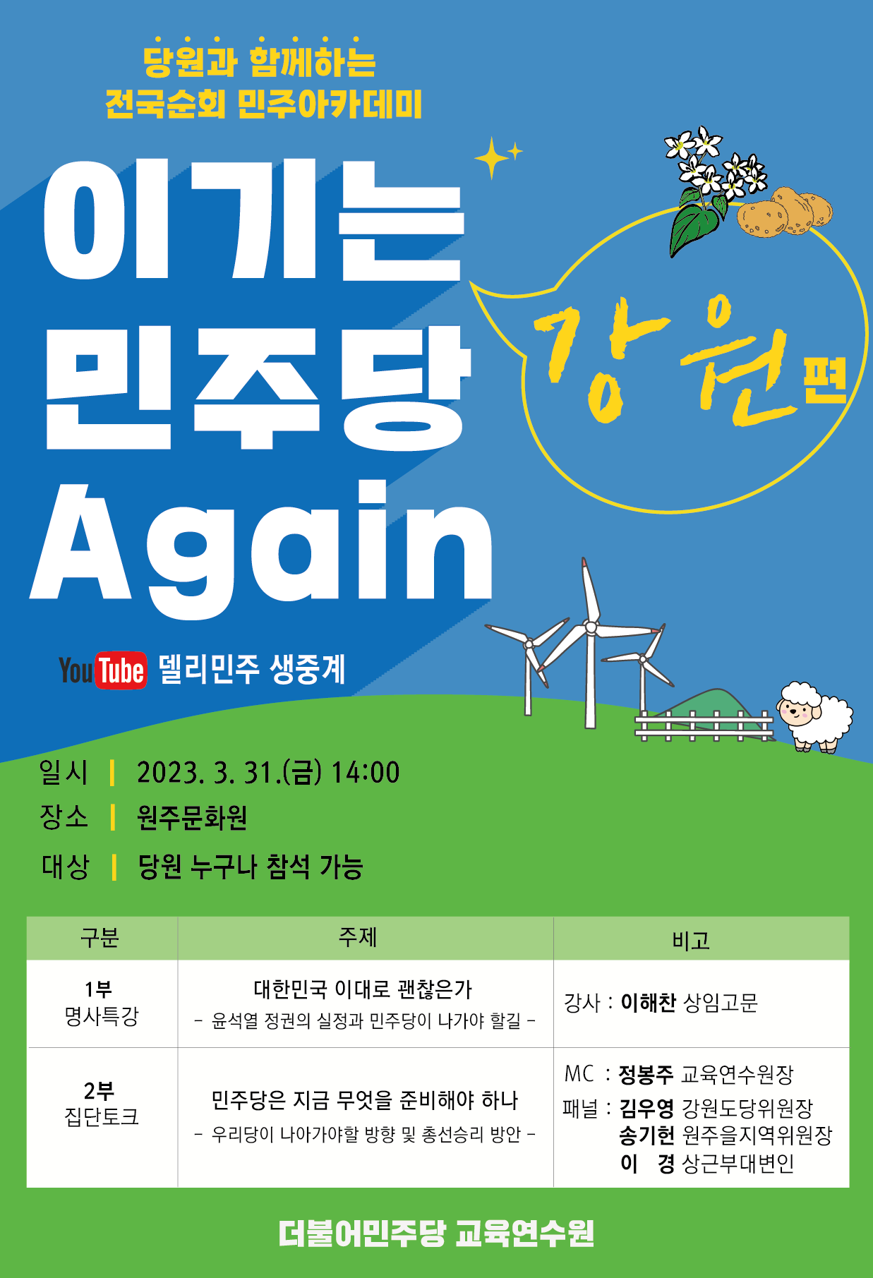 당원과 함께하는 전국순회 민주아카데미 : 이기는 민주당 Agian - 강원 편-