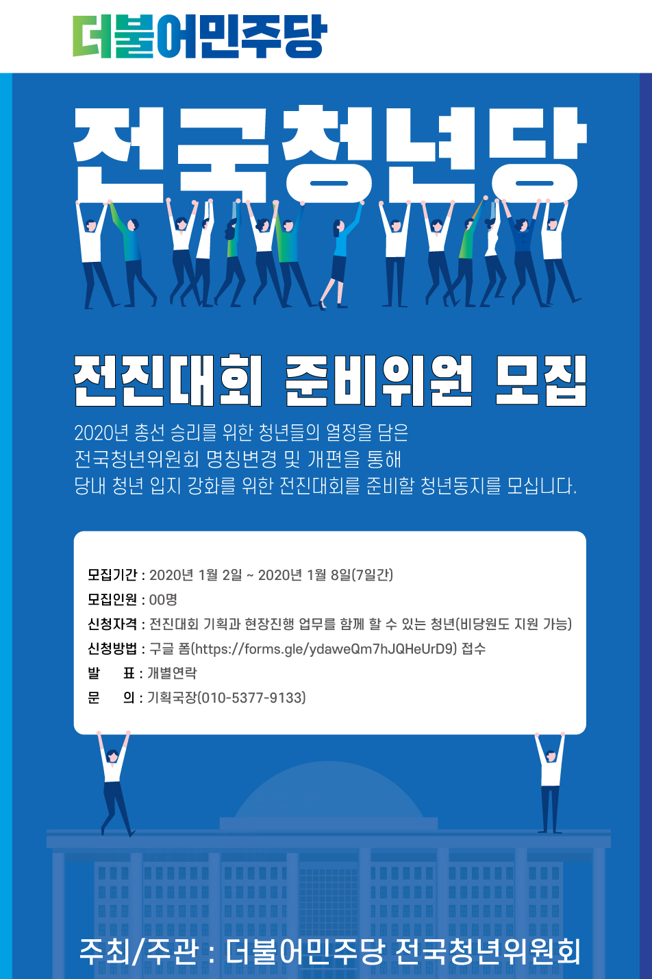 - 주최/주관 : 더불어민주당 전국청년위원회