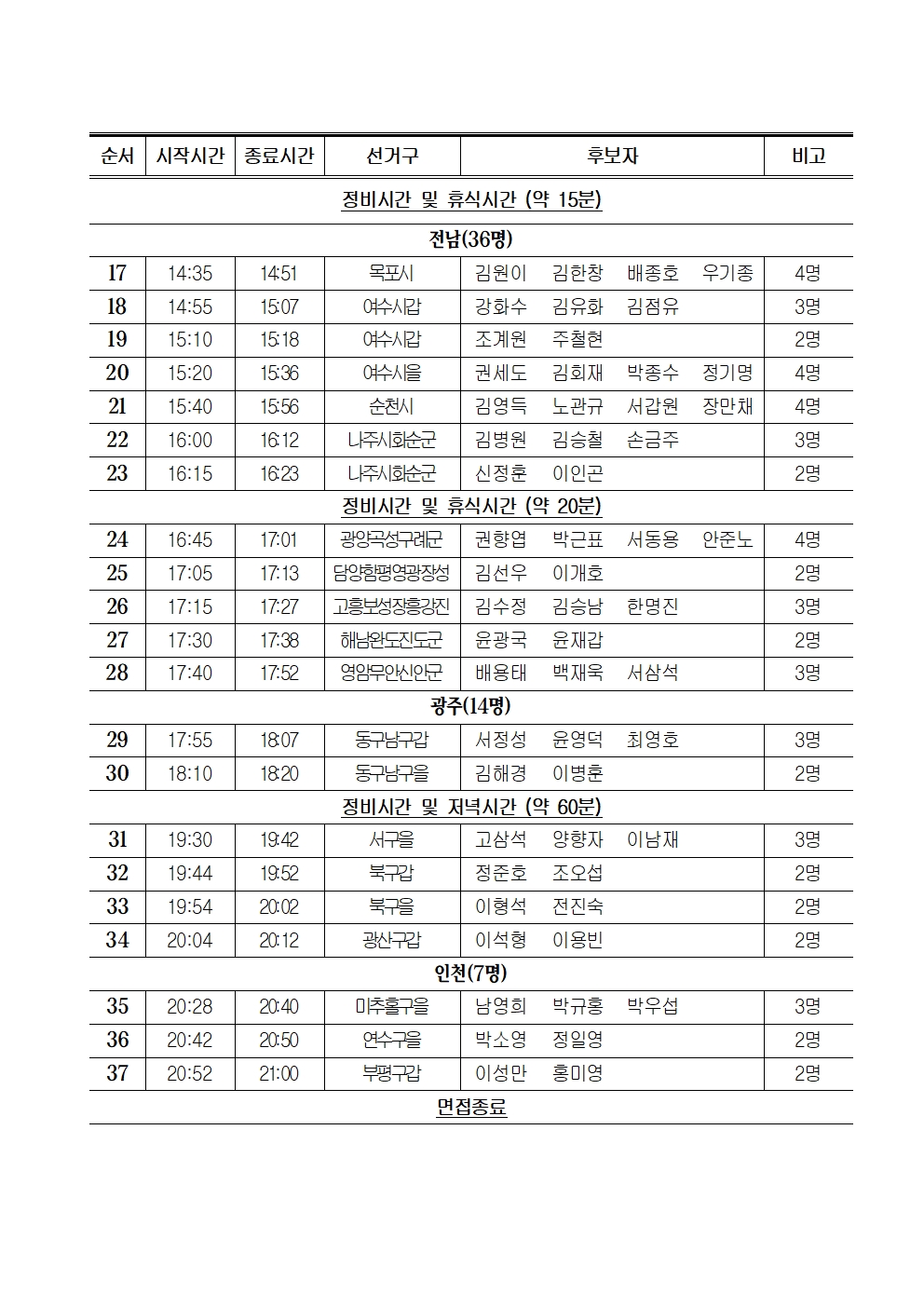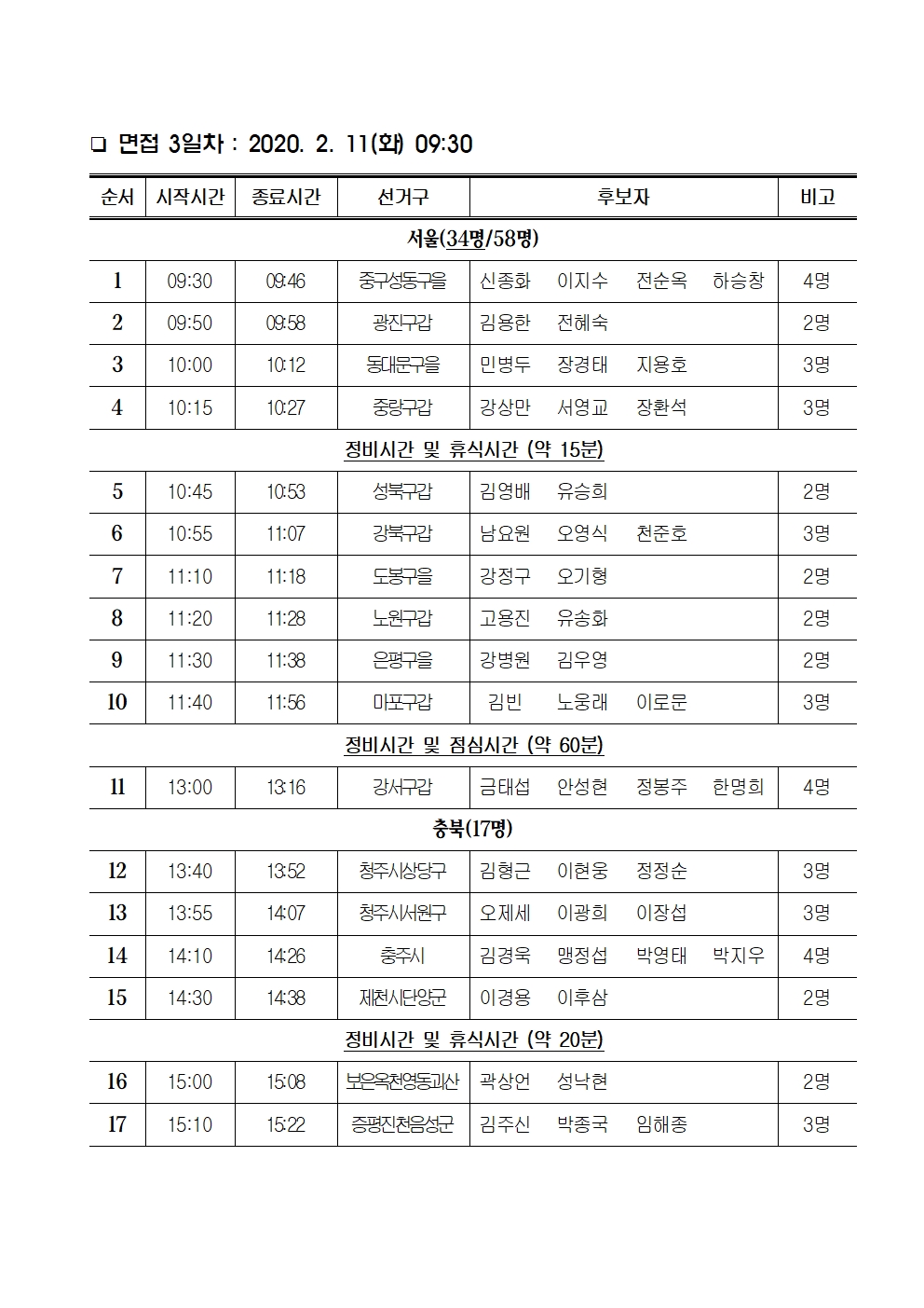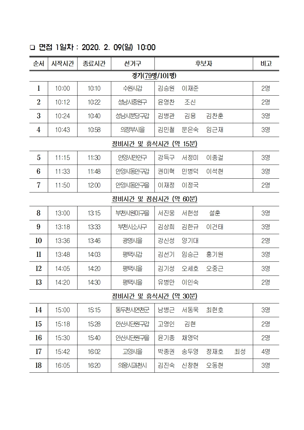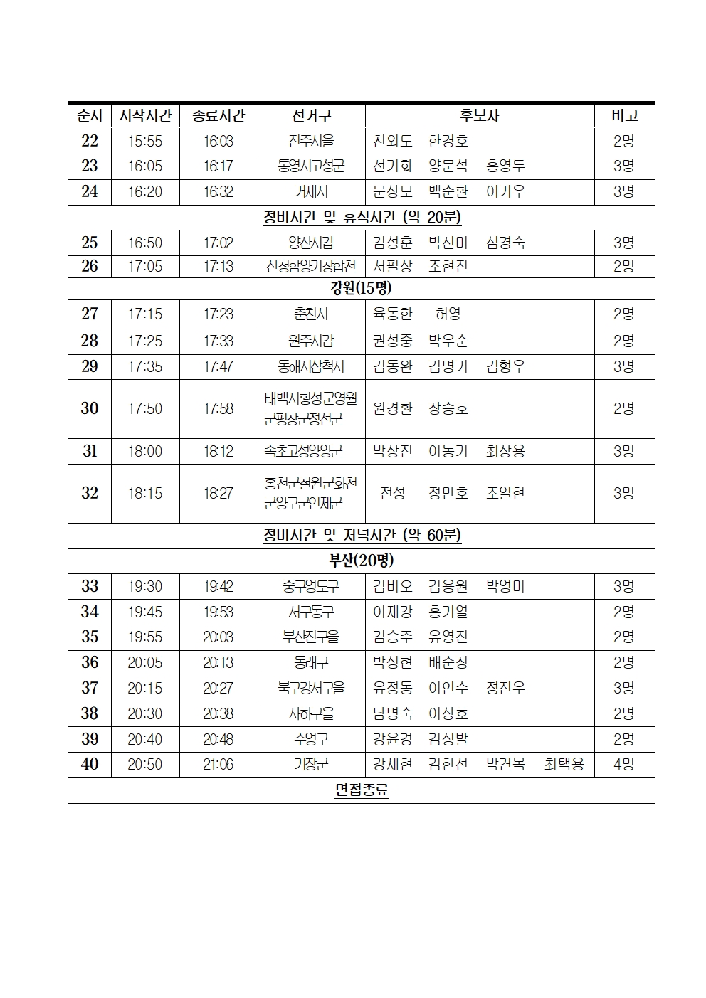 제21대 지역구 국회의원 후보자 면접 안내(02.07. 수정)