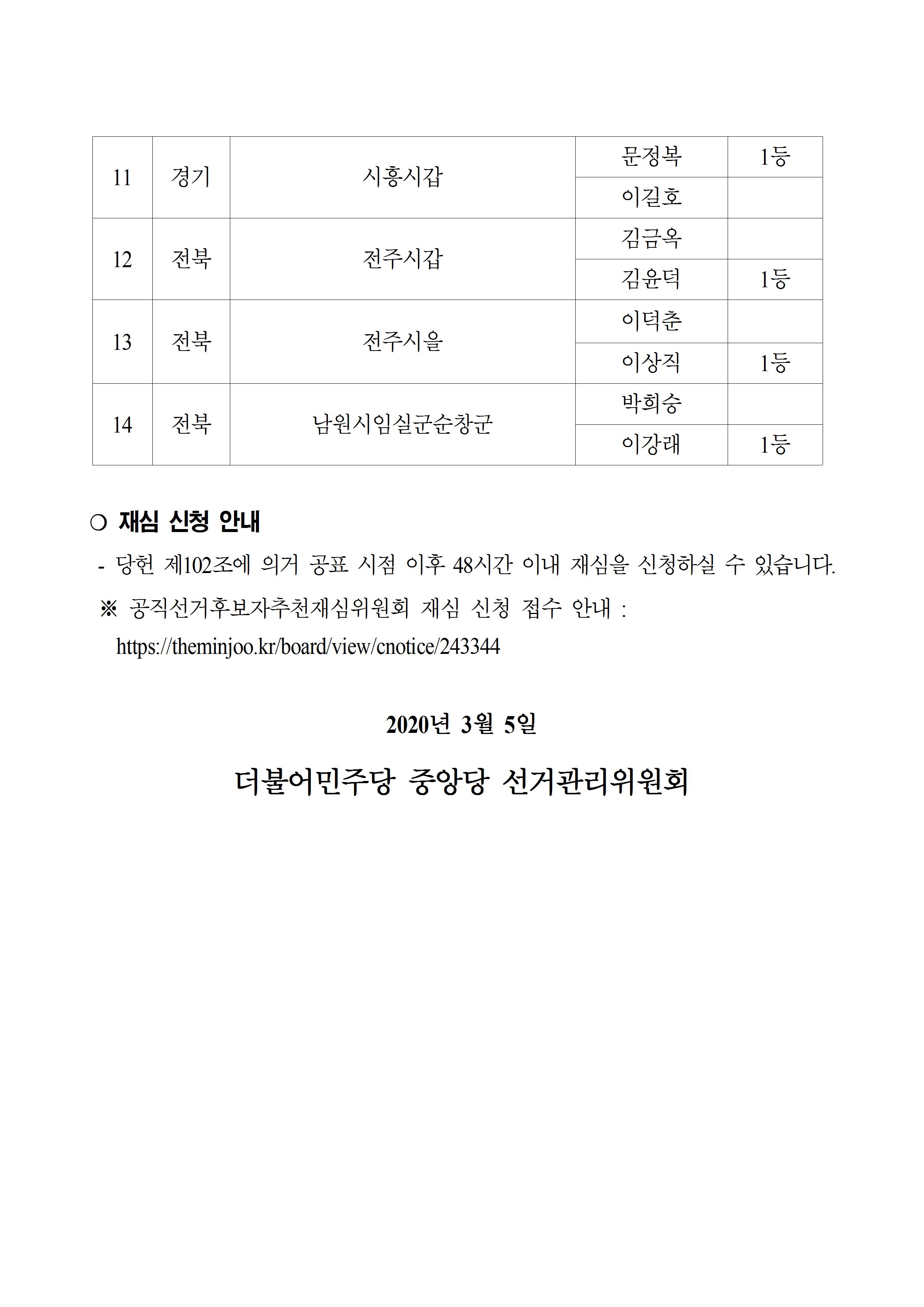 200305_5차_경선_결과(14곳)_제21대_국회의원선거_지역구_후보자_경선(홈페이지_공고용).hwp