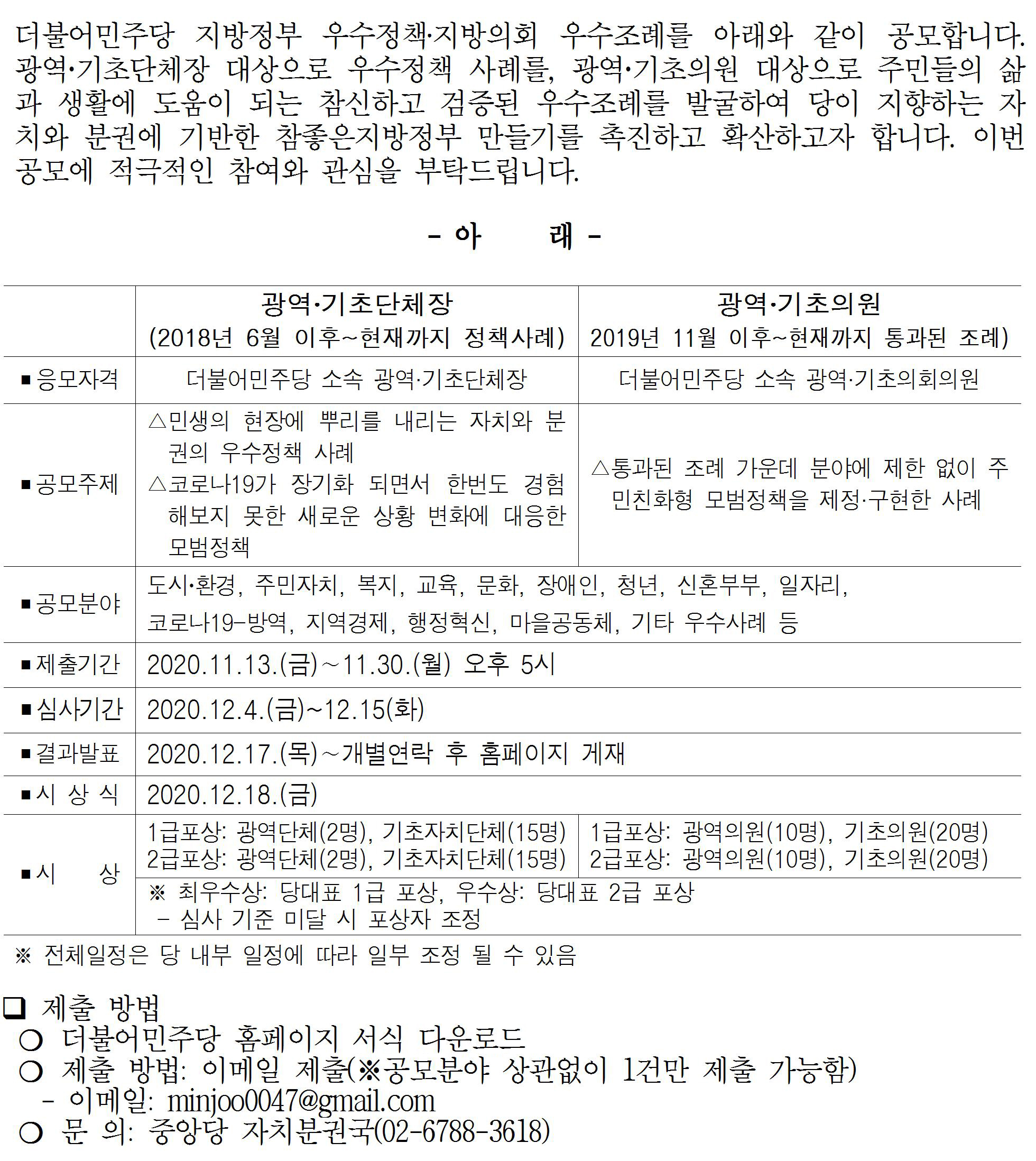 우수정책‧지방의회 우수조례 경진대회 공고