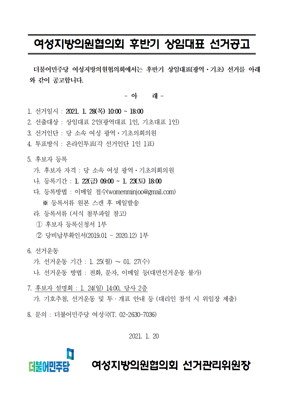 2021.4.7 재·보궐선거 전라북도당 공직선거후보자 공모 공고