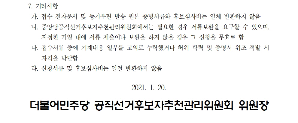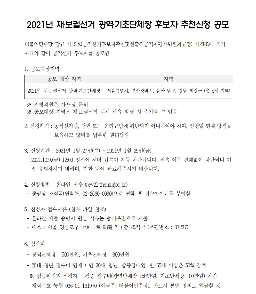 2021년 재보궐선거 광역기초단체장 후보자 추천 신청 공모