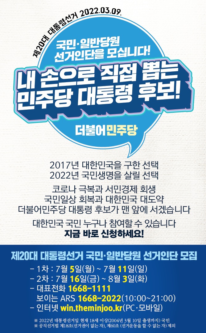 제20대 대통령 선거 후보자 선출 경선 국민·일반당원 선거인단 모집 안내