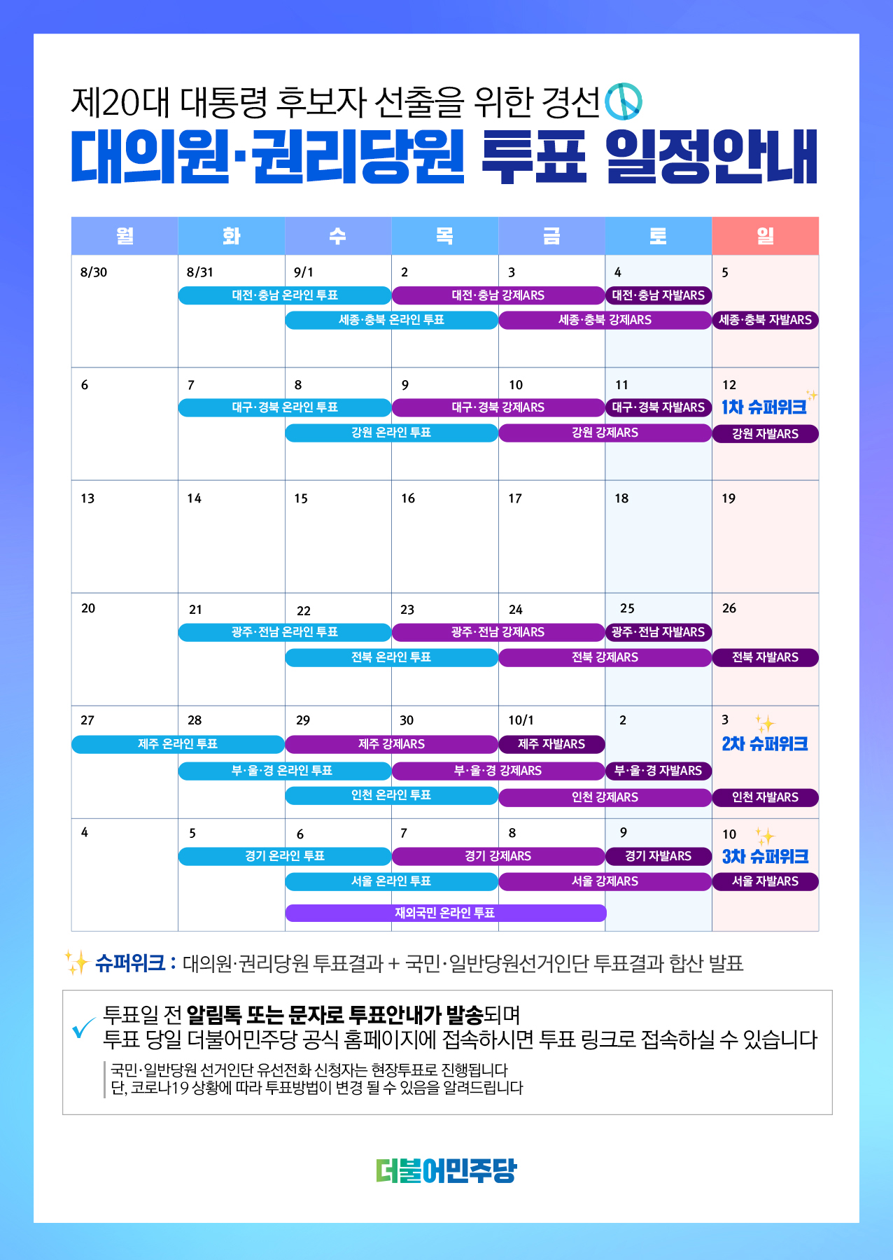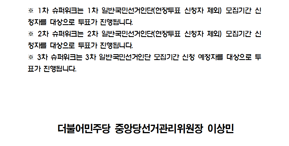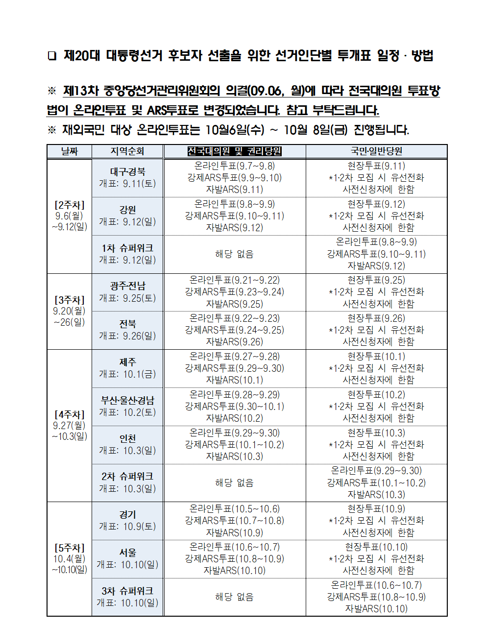 제20대 대통령선거 후보자 선출을 위한 선거인단별 투개표 일정 안내