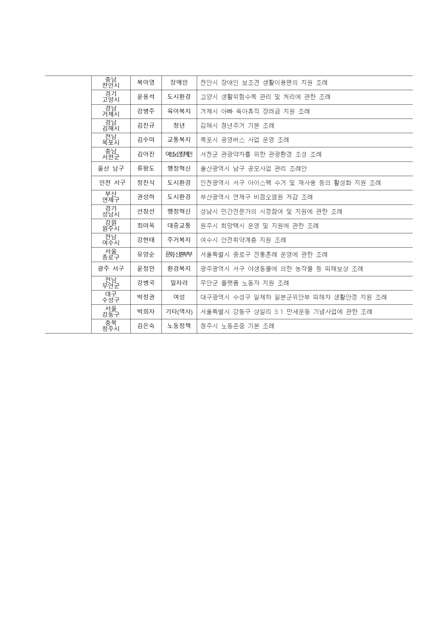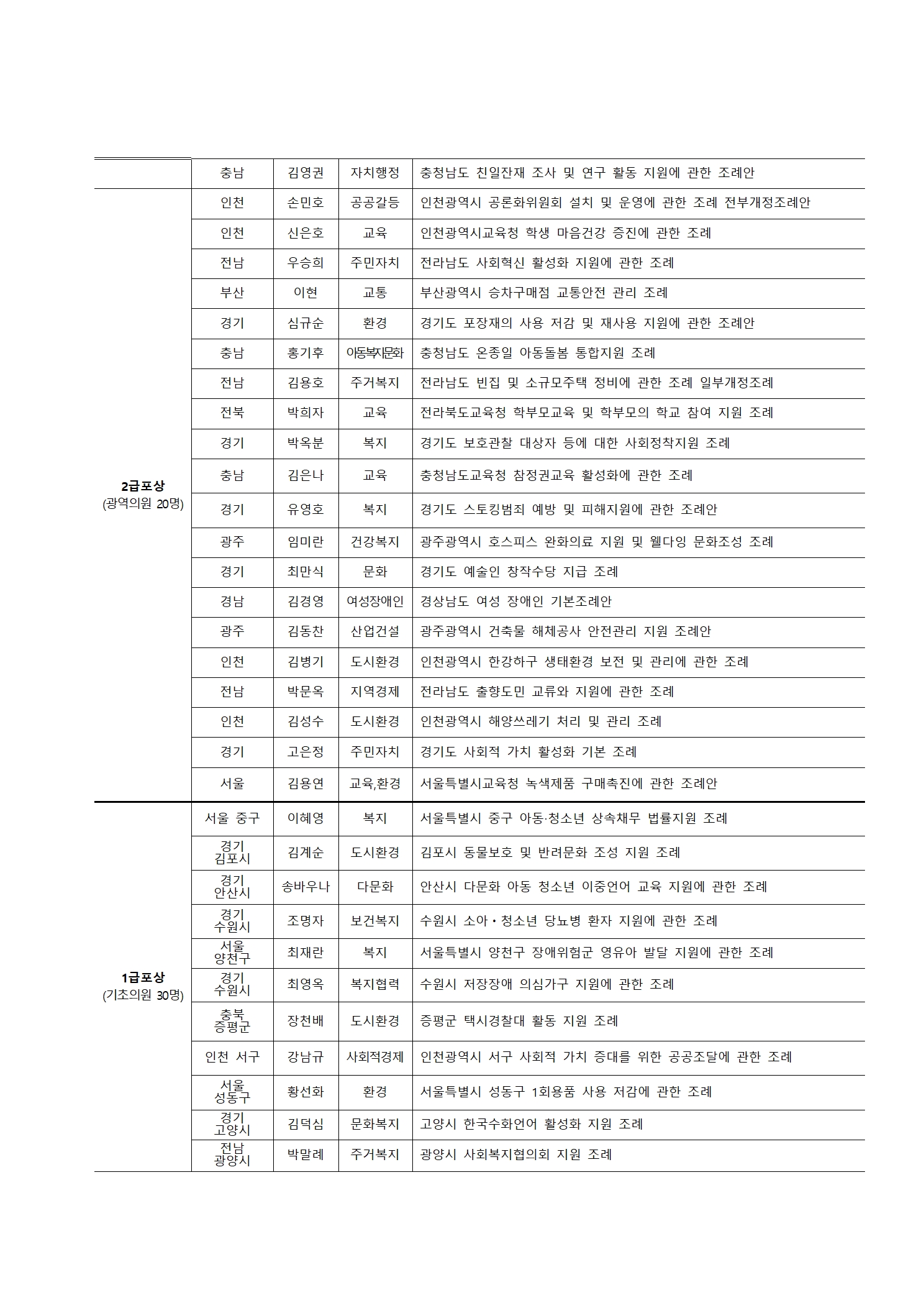 2021 지방정부 우수정책․지방의회 우수조례 경진대회 수상자 공지(수정)