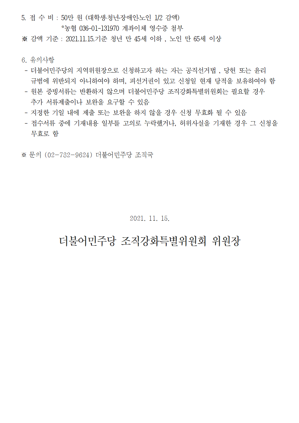 더불어민주당 충남도당 사무직당직자(계약직) 공개채용