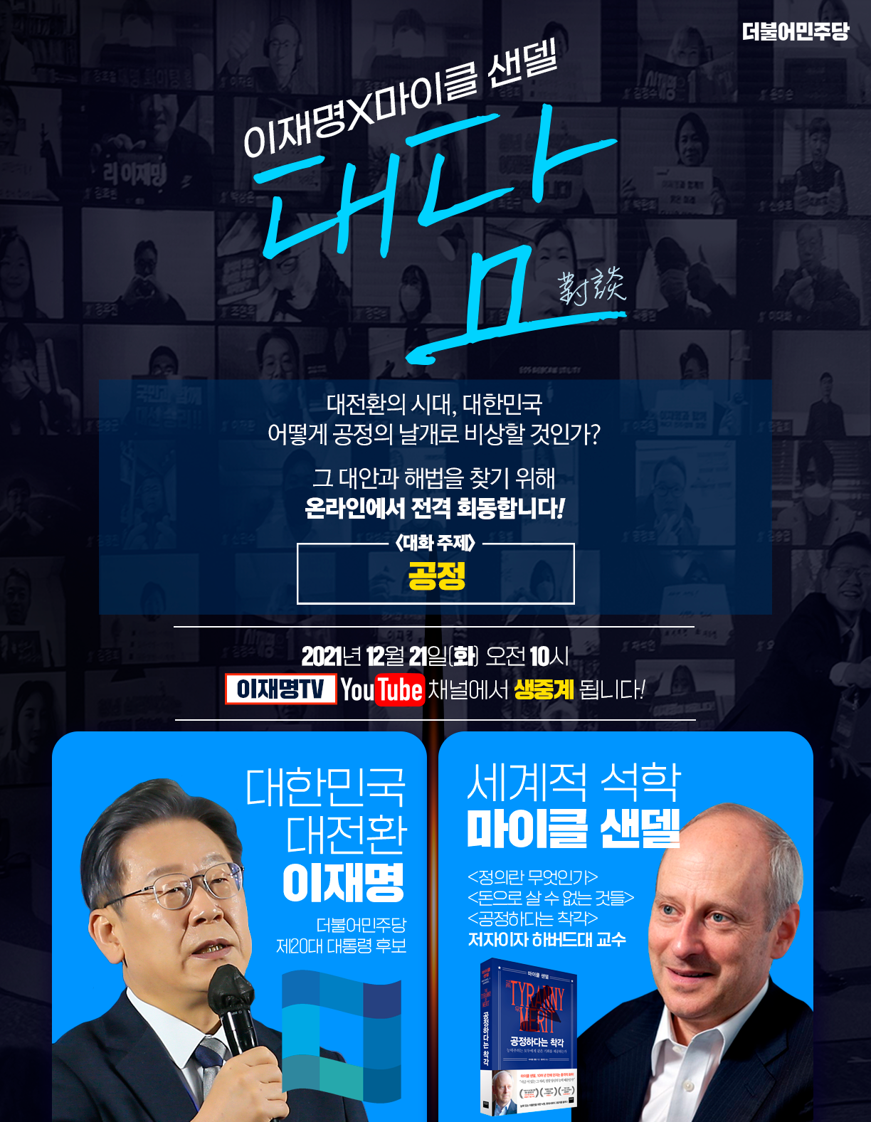 12월 21일(화) 오전 10시, 이재명X마이클 샌델 대담이 시작됩니다!